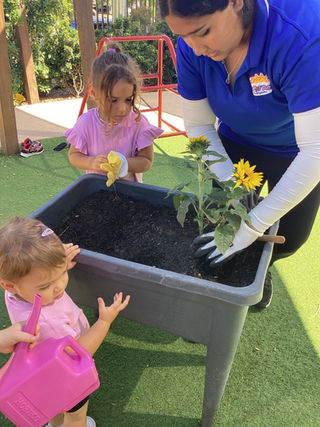This month for Eco Warriors, we have continued exploring our learning interest: sunflowers. The children have absolutely loved this topic and have shown so much curiosity and excitement throughout the experiences. We worked on a few group crafts, including giant tissue paper sunflowers, which the children helped create together. It was a great teamwork activity and sparked lots of conversations about plants and nature. Our big highlight for the month was planting our very own real sunflowers. We planted both sunflower seedlings and sunflower seeds, learning the difference between them and what plants need to grow. The children enjoyed getting their hands dirty, using the watering cans, and patting the soil down gently. They are now very excited to check on them daily and watch them grow over the next few weeks. This experience has helped the children develop responsibility, care for the environment, and a sense of pride in what they have created.